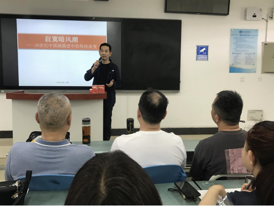 邓峰研究员此次讲座以较为宏观的视野浏览二十世纪中国画演进中的传统流变,从上世纪初“中国画”概念生成及生存危机谈起,分时段、分地域、分流派地考察传统资源的扬弃、改造、再生,在回顾中瞻望当下乃至未来中国绘画传统生发的多种可能性。讲座涉及到当下一些热点学术讨论:“传统”到底是什么?哪些可能会僵化?哪些可能被激活?时代选择与传统更新之间又是怎样的关系等话题。