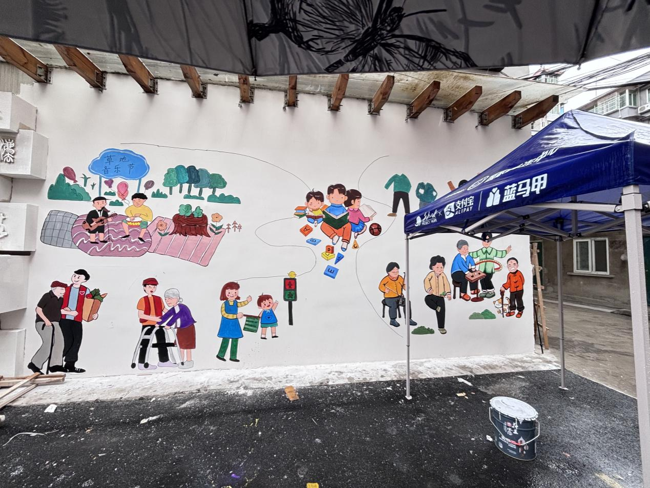 党员们早早地来到文庙街的老旧小区,以小组为单位,迅速分工,认真测量、设计,为墙面选取合适的主题和图案。她们或蹲或站,或勾或描,用画笔在墙壁上勾勒出美丽的图案和温馨的标语。在创作过程中,党员们不仅展现出了高超的绘画技艺,更体现出了团结协作、互帮互助的精神。大家互相交流创作心得,共同解决遇到的难题,形成了一幅幅生动和谐的画面。
