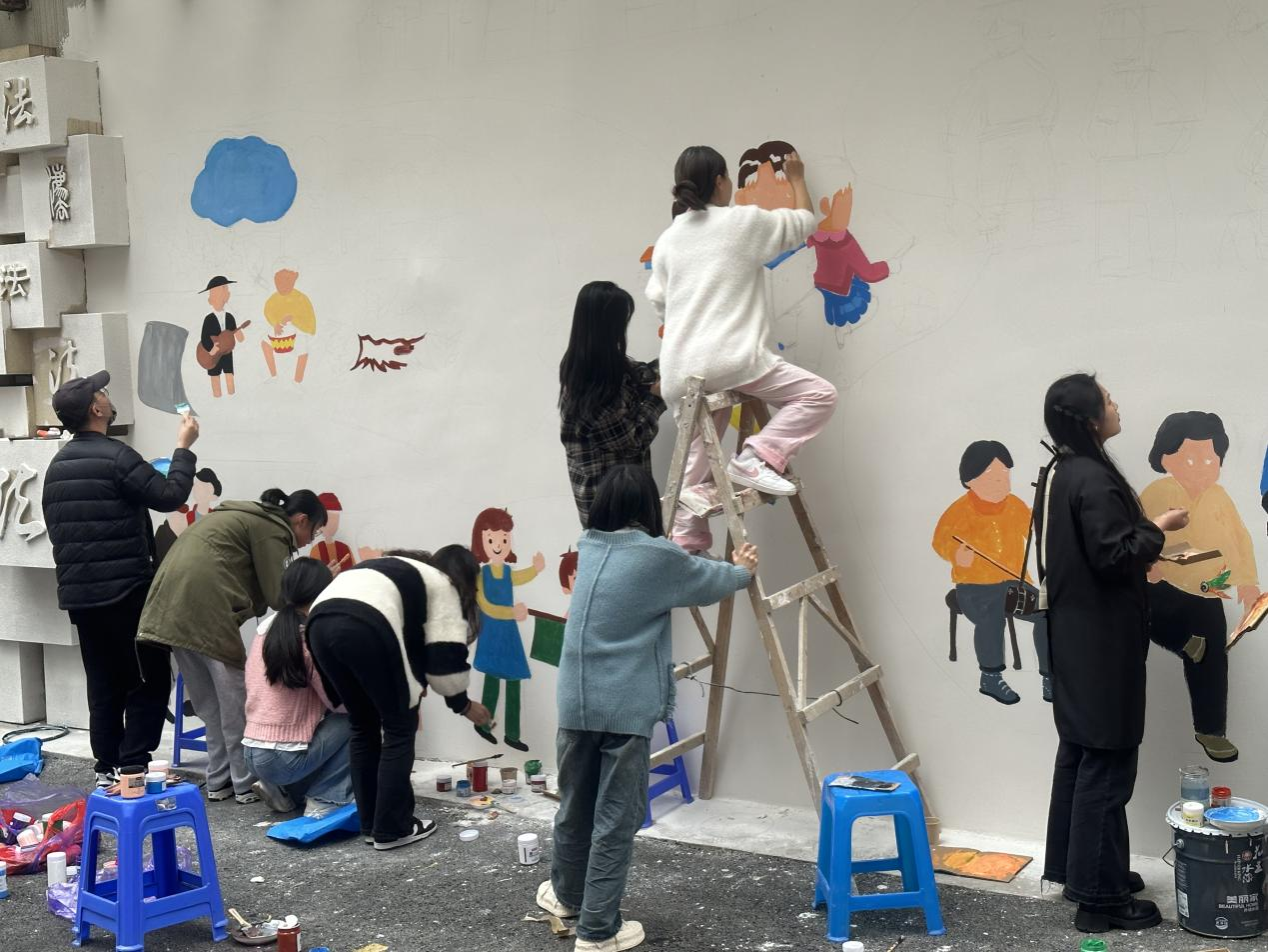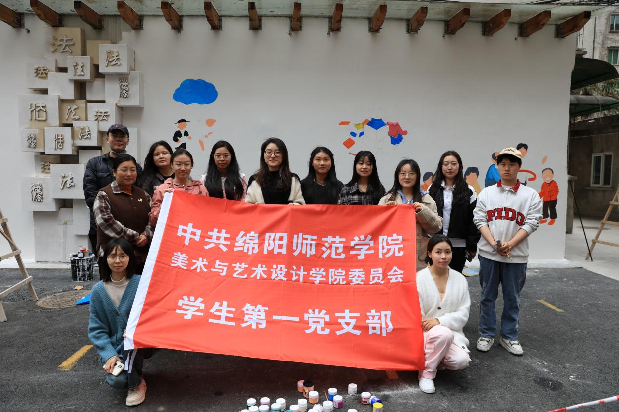 3月24日,美术与艺术设计学院学生第一党支部组织学生党员到涪城区文庙街体运村社区,开展“美化老旧小区,共建美好家园”主题党日活动,利用墙绘艺术为社区赋予新的面貌,助力城市“焕新颜”。