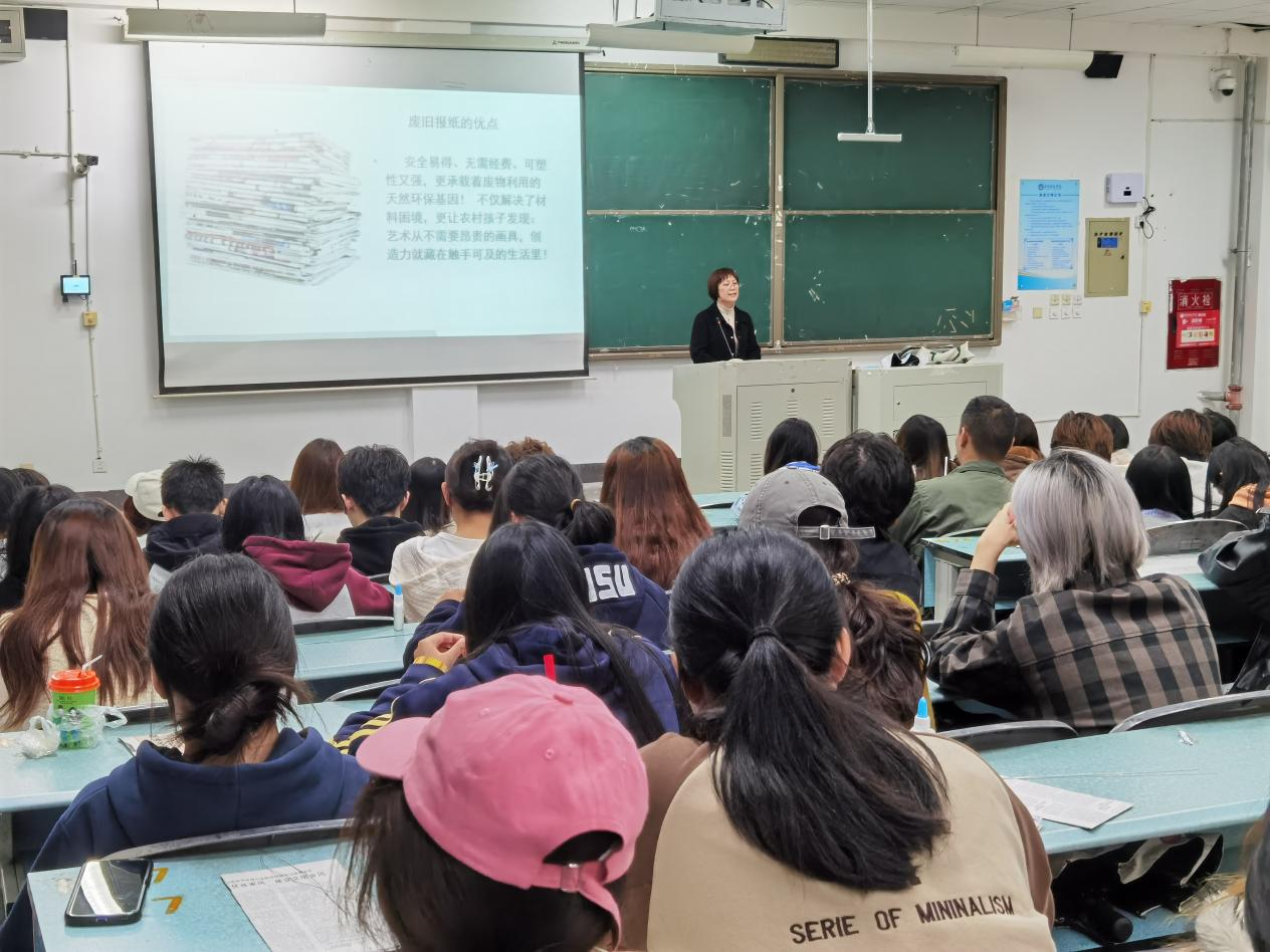 10月22日晚,美术与设计学院优秀校友、四川省特级教师、全国十佳生态环境志愿者曾慧老师重返母校,为近两百名师生带来一场别开生面的专题讲座。讲座以“乡村学校美育资源的开发路径——以废旧报纸创意艺术为例”为主题,通过“一张旧报纸的美育力量”为线索,分享其扎根乡村27年的美育探索经验,旨在响应绿色可持续发展理念,激发青年学子创新思维与动手能力,探索环保与美育融合的实践新路径。